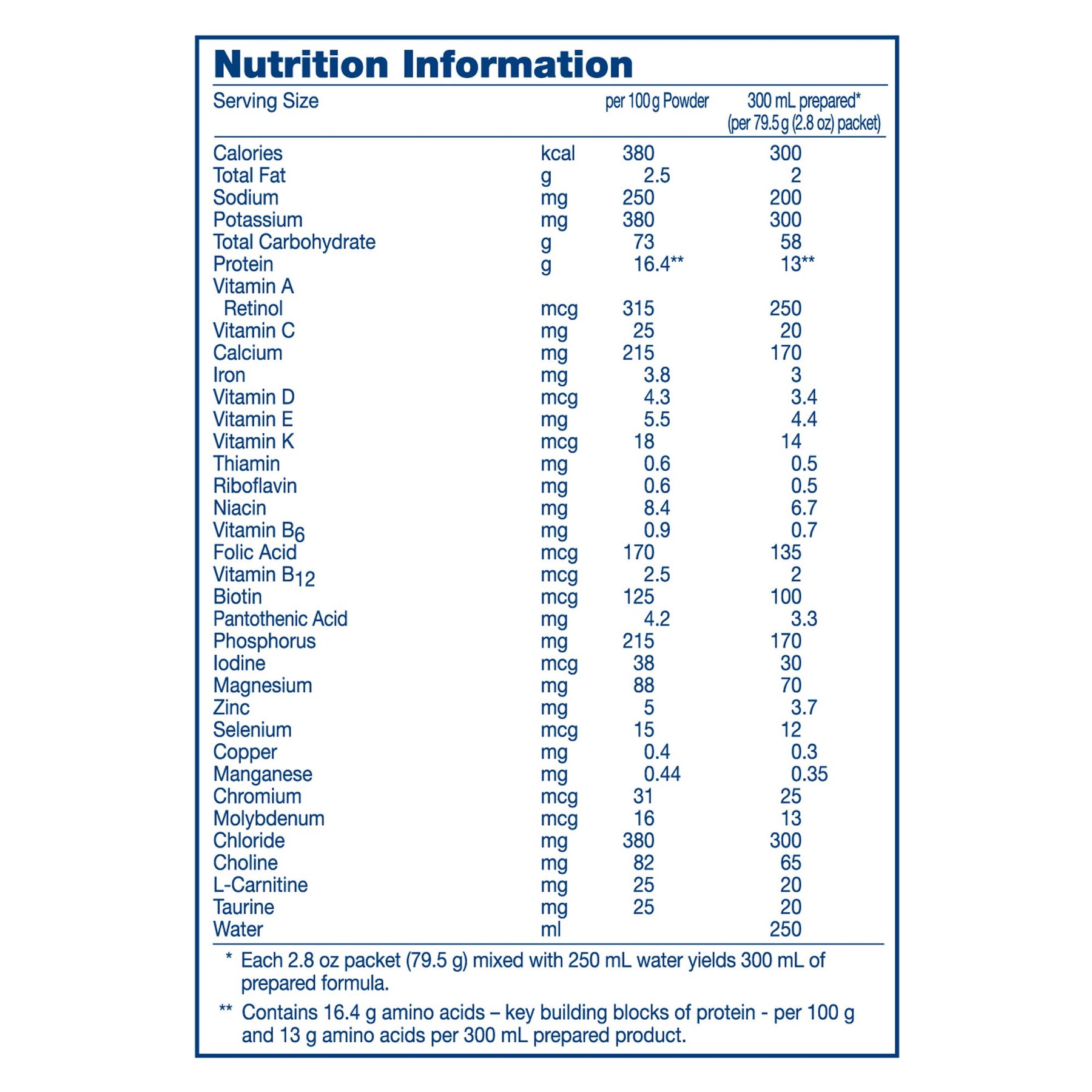 • 100% free amino acids for severely compromised gastrointestinal tracts
