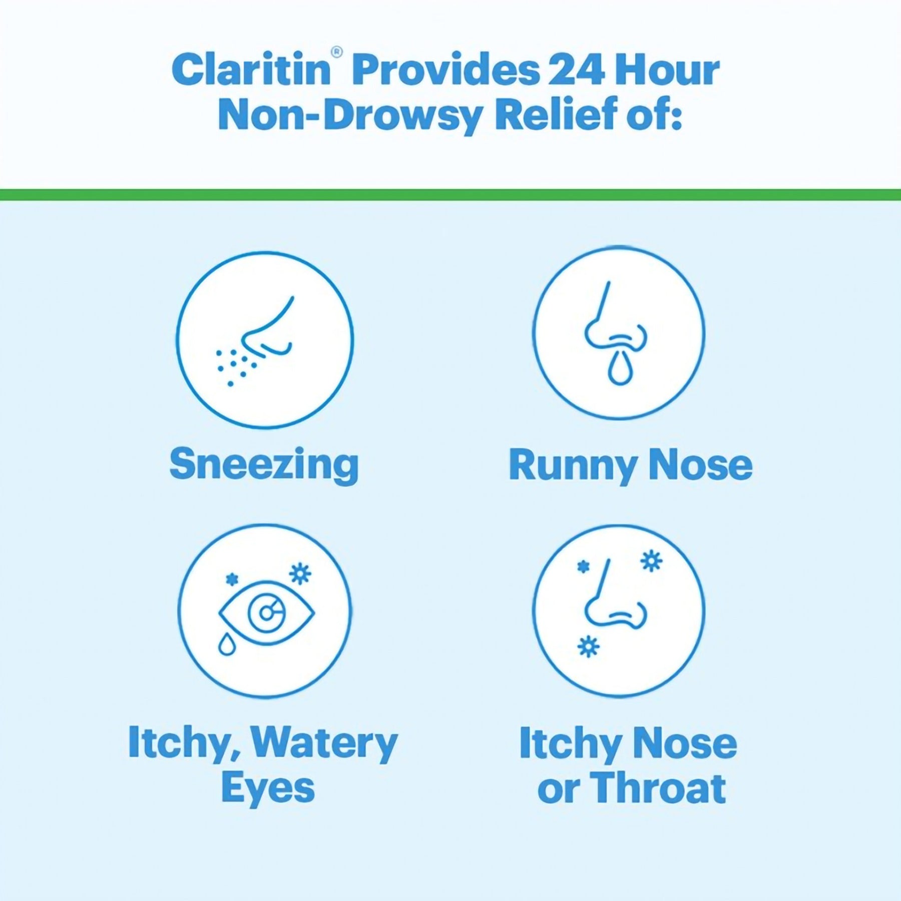 - Claritin provides relief of symptoms that can be triggered by over 200 different allergens: It provides nondrowsy relief caused by allergens like those from pollen, mold, dust and pets