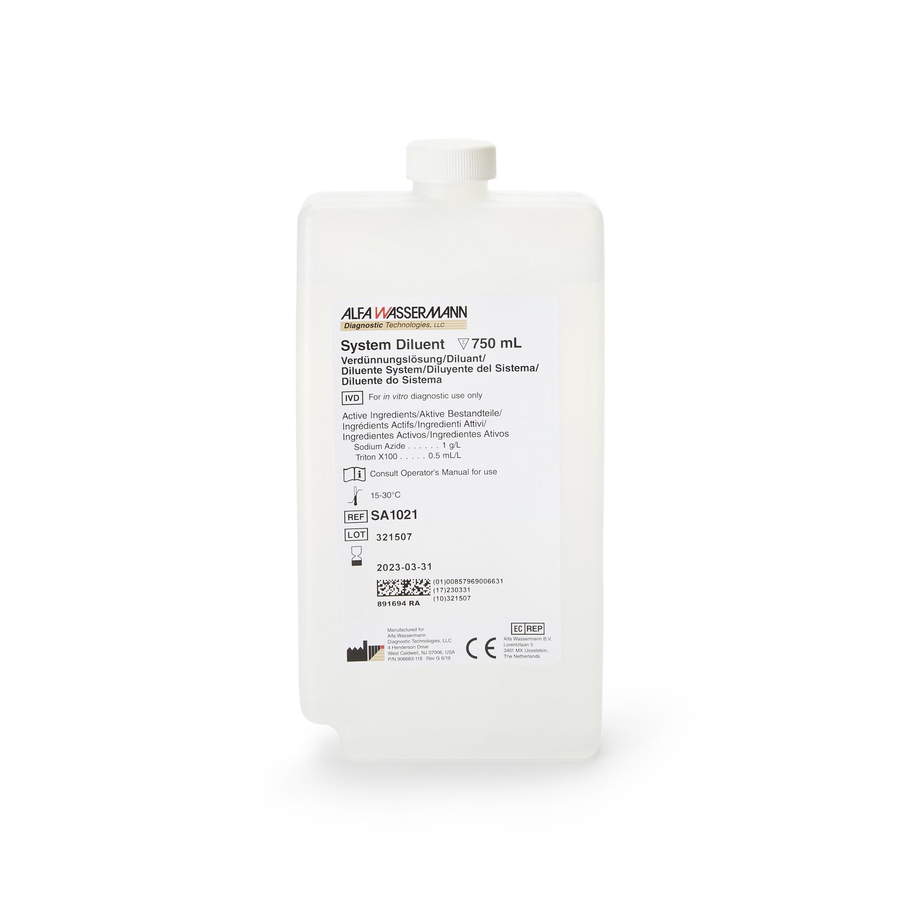 This system diluent is for use as a wash solution on the Alfa Wassermann Diagnostic Technologies' Clinical Chemistry Systems.