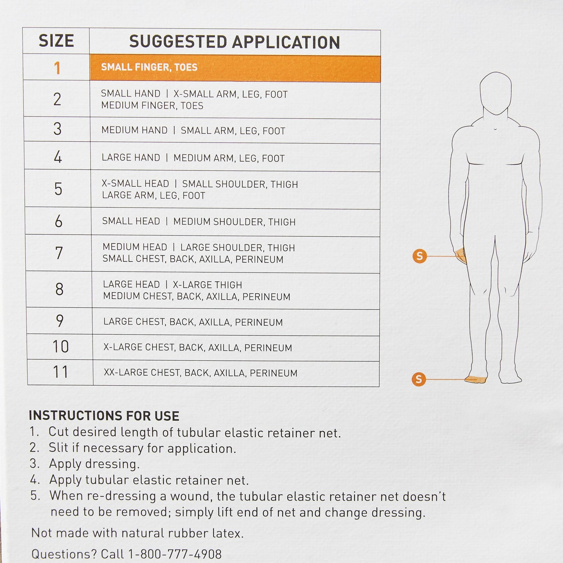 - Width is 6 inches for fingers, toes and wrists