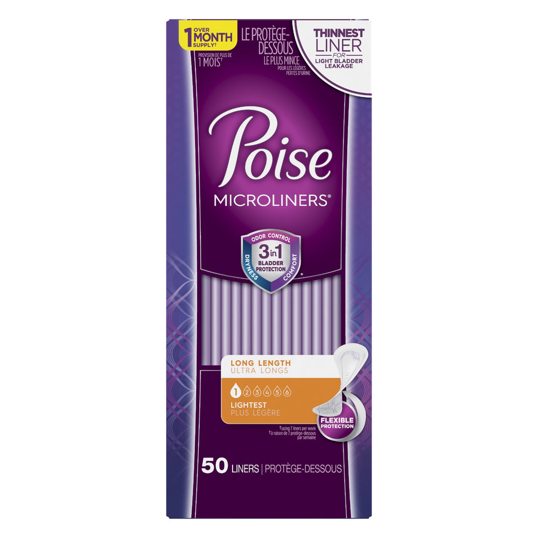 Poise® Microliners Lightest Bladder Control Pad, 6.9-Inch Length, 1 Pack of 50