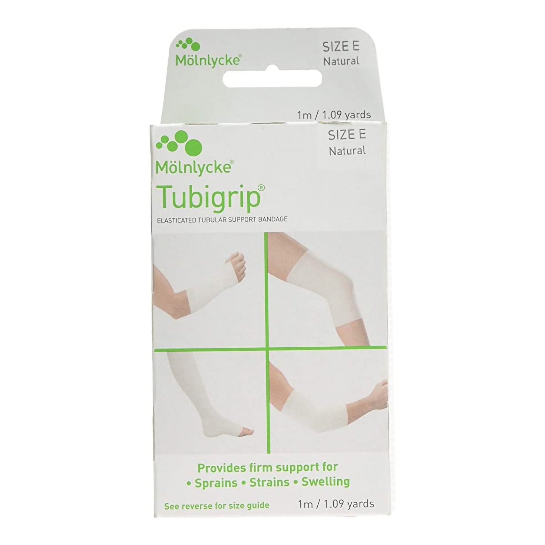 • No-color Tubigrip elastic tubular supporting bandage gives an average amount of compression and can be positioned without pins or tape